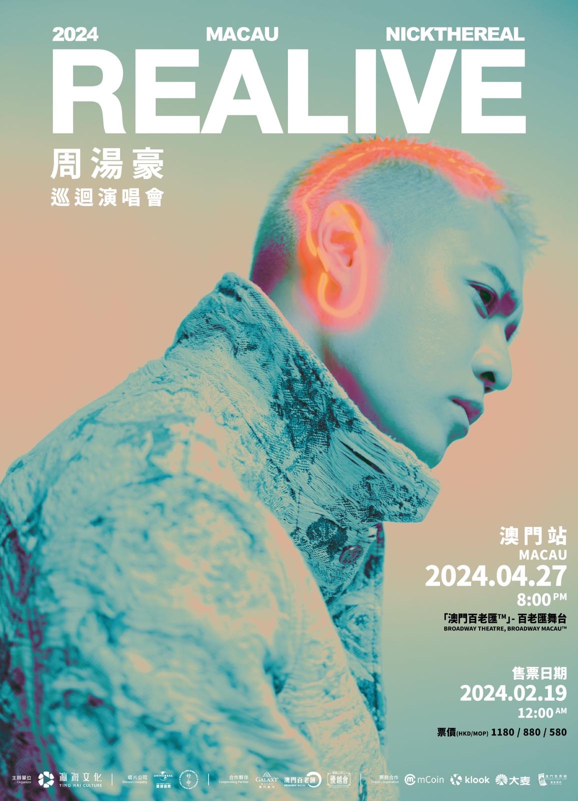 Yes娱乐3月7日讯 「全能天王」周汤豪(NICKTHEREAL)一手策画、被业界誉为「一辈子一定要朝圣的演唱会」的「REALIVE」巡演,继日前公布东南亚巡演2场场次外,今(6日)再度公布增加澳门站的好消息!将於4月27日在澳门百老汇举办,这也是周汤豪出道以来首次於澳门举办个唱,他笑说:「非常喜欢澳门,澳门有很多好吃的甜品,这是我每次去澳门最开心的事情。」消息一出,除了澳门粉丝High翻,就连去年曾朝圣过香港站的粉丝,也直言要冲一波「二刷」,足见周汤豪饶炸舞台的惊人魅力。