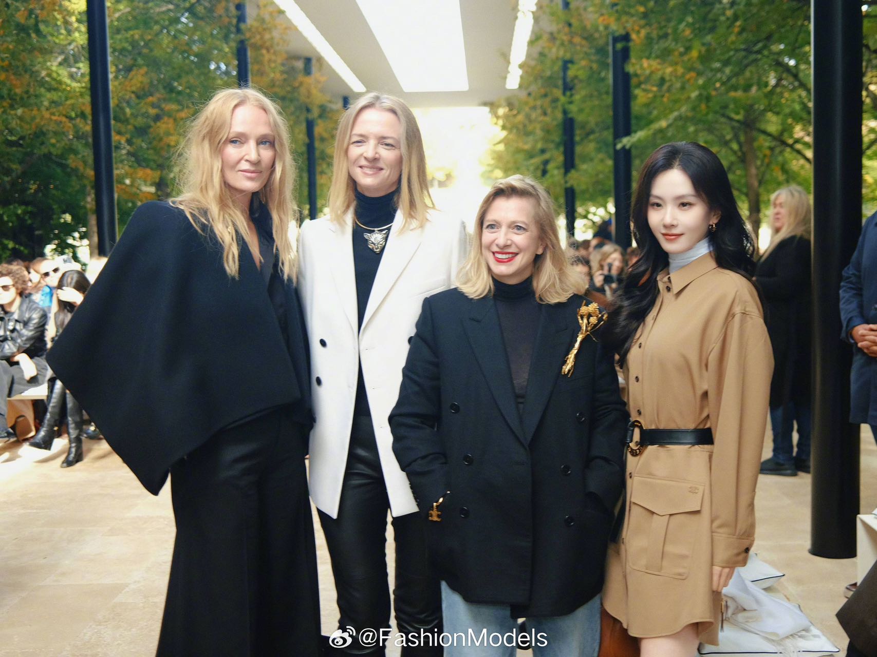 这份精准契合,换来了品牌毫不掩饰的宠爱。她落座在LVMH集团大公主身旁,不仅身边被CELINE集团高管环绕,秀场路上与LVMH集团大公主、着名演员乌玛瑟曼亲切合影,与迪奥董事长兼首席执行官从容交谈。