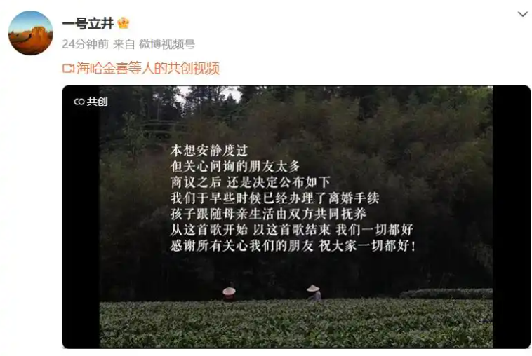 两人的离婚消息来得有些突然,尤其是因为今年5月27日,海哈金喜还曾发视频明确否认离婚传闻。