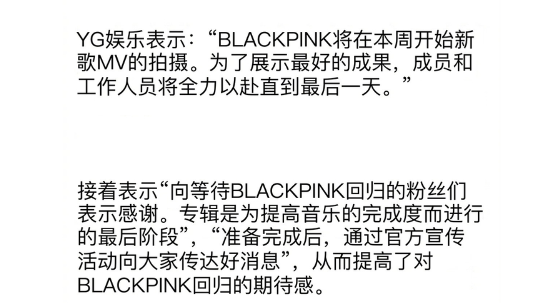 Yes娱乐10月20日讯 10月20日,韩国娱乐巨头YG公司正式宣布,旗下顶级女团BLACKPINK将于本月末启动新曲MV的拍摄工作。这一消息迅速引爆全球社交媒体,无数“BLINK”(粉丝昵称)在平台表达期待,相关话题瞬间冲上热搜榜。
