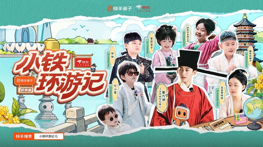 作为快手打造的头部亲子IP,《小铁环游记》杭州站首次引入艺人嘉宾与“时空穿越”主题,通过10集微综艺与6集番外短片的立体内容矩阵,为观众呈现了一场跨越古今的杭州探索之旅。毕业于北京邮电大学的“学霸哥哥”唐九洲首度加盟,化身“3点半时空引路人”,携手@宁小雪、@淼淼是妹妹等6组高人气亲子达人家庭,带领萌娃以“时空探秘员”的身份穿梭于三个时空维度。