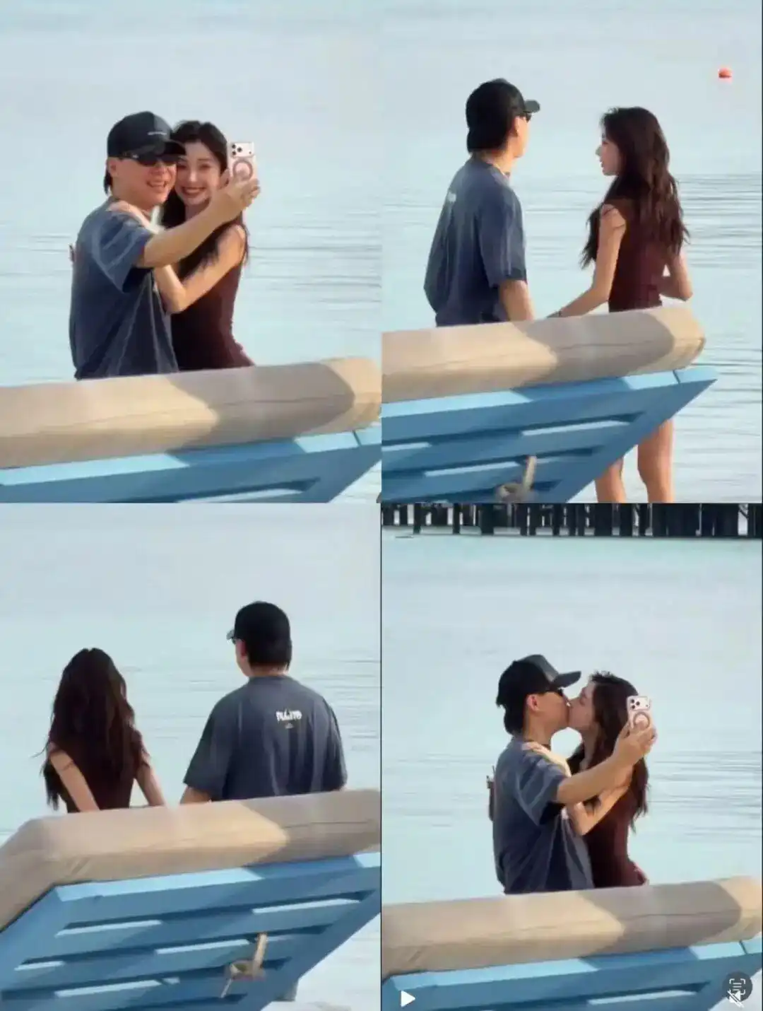 据曝光的视频及照片显示,二人在马尔代夫某私密海滩享受悠闲假期时举止亲昵,毫不避讳。画面中,胡彦斌与易梦玲身着清凉夏装,时而并肩漫步于洁白细腻的沙滩,时而驻足欣赏湛蓝清澈的海景,氛围轻松惬意。最为引爆话题的瞬间,是两人在夕阳余晖的映照下情难自禁,上演了一幕浪漫的海边热吻,甜蜜指数爆表,俨然一对正处于热恋期的爱侣。