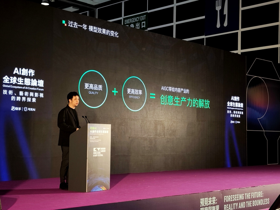 紫荆文化集团副总经理丁伟表示,“我们今天欣喜地看到,以可灵AI为代表的大模型正在迈向智能化、高效化、低门槛的时代,AI技术正在重塑产业生态、创作逻辑,甚至拓展艺术表达的边界,极大地释放了内容生产的创意潜力。”