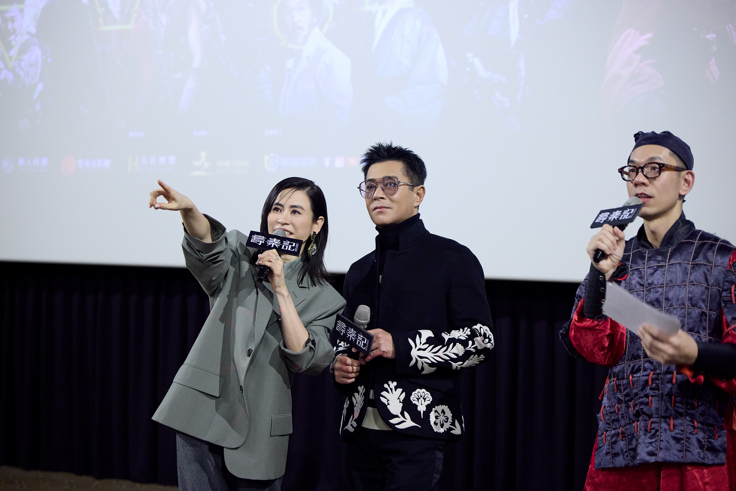 古天乐与宣萱在见面会上更大展亲切的幽默感,更走进观众席大送海报和礼物,「古宣CP」逗得全场观众又叫又笑,气氛非常热烈,古天乐表示希望有机会多多来台见粉丝,而宣萱希望之後有长一点的时间可以和影迷们聊聊天、话家常。而和古天乐合作过的刘冠廷与余香凝悄悄隐身在见面会中同场看片,余香凝现透露自己有参与《寻秦记》的演出,原来她是片中白百何的粤语配音,而她与刘冠廷一起合作了即将在春节上映的新片《双囍》,古天乐特别允准他们宣传一句话,刘冠廷表示希望观众能像喜爱《寻秦记》般的喜欢《双囍》,这样他与余香凝可以在25年後拍《双囍》续集,「一个作品能陪伴观众25年真的是件太浪漫的事啦!」