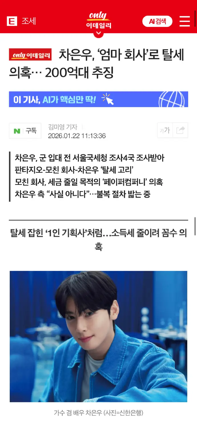 Yes娱乐1月22日讯 1月22日,韩国税务部门公布一起重大追缴税款案件,涉及顶级偶像艺人车银优。据官方通报,车银优因涉嫌通过海外空壳公司转移个人收入、虚报业务支出等方式逃避巨额税款,被国税厅最终核定追缴税款及罚款合计200亿韩元(约合1.1亿元人民币)。这一数字刷新了韩国演艺圈历史追缴纪录,引发社会舆论震荡。