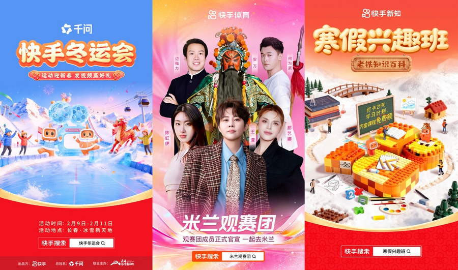 体育赛事也将点燃新春激情。2026米兰冬奥会期间,快手将联合冬奥会四金得主王濛及多位快手达人组成“米兰观赛团”,陪老铁解锁观赛新视角的同时,开展一场民俗演出展示中国文化;而在吉林长春落地的“冬运会”,将打造咱普通人自己的冰雪运动会。此外,还有篮球燃新春、快手NBA全明星观赛团勇闯洛杉矶等,群星汇聚,陪老铁过大年。