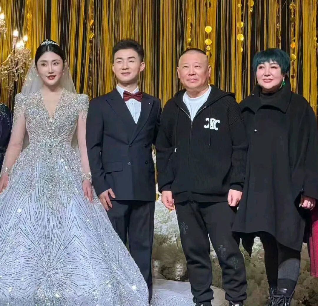 婚礼现场处处透着师父郭德纲对陶阳的偏爱。这位当年“京剧神童”12岁拜师,历经倒仓期迷茫,是郭德纲一句“京剧是你的魂,相声是你的饭”将他稳住,后又砸钱成立麒麟剧社为其搭台。大婚之日,郭德纲不仅携妻子王惠、儿子郭麒麟和郭汾阳全家到场,更亲自上台主婚致辞——前两年王九龙、张九龄结婚时,他都因档冲突未能露面。于谦稳稳坐在证婚人位置,还现场爆料新郎新娘是在麒麟剧社“一见钟情”。自2011年岳云鹏婚礼后再未主持的高峰也重执话筒,将陶阳从神童到新郎的半生故事娓娓道来。