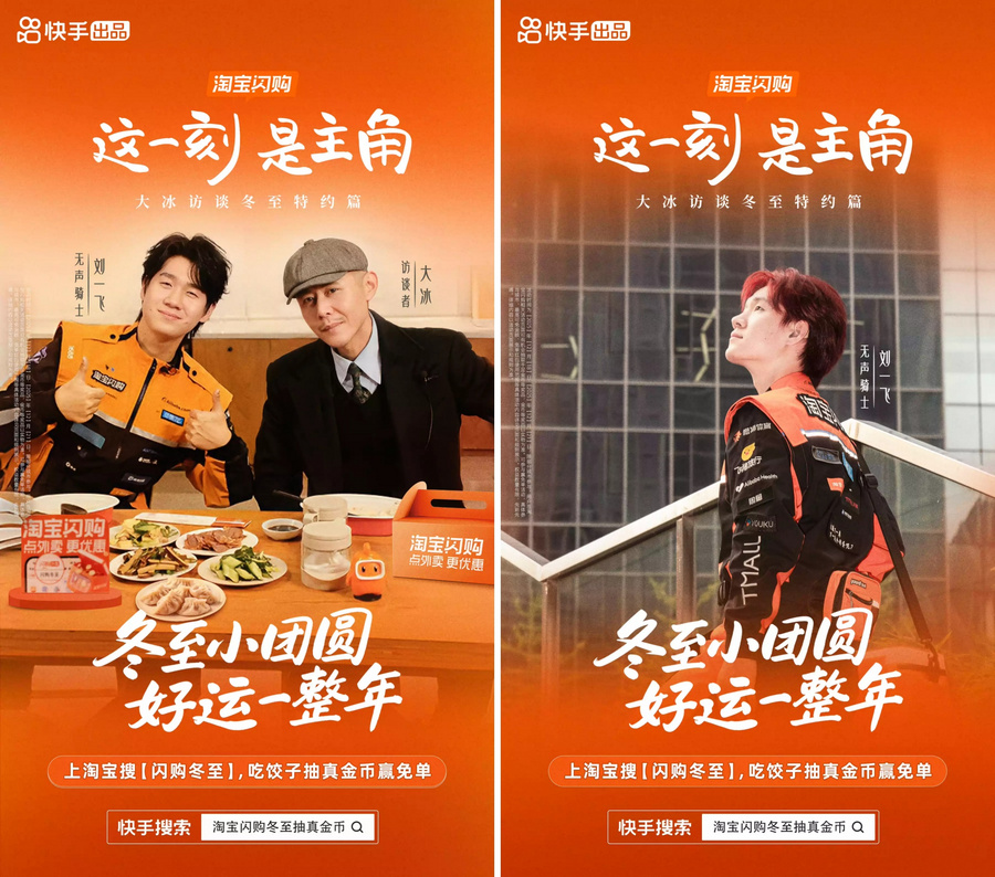 栏目从冬至对话淘宝闪购骑士刘一飞开始。无声骑士刘一飞,没有被听障按下静音键,而是凭着惊人的记忆力与空间感成为跑单“单王”,借淘宝闪购智能外呼系统把文字转成语音,让无声也能“打给”顾客。冬至夜,他与大冰围桌吃饺,手语聊起画画、旅行和藏在心里的远方。大冰像款待老友般握住他的手,没有煽情、没有仰视,只在饺子里悄悄包进一枚硬币——刘一飞咬到好运的那一刻,祝福无声落地,“冬至小团圆,好运一整年”。他与大冰之间两人跨越言语的默契,藏着都市最朴素的温度。 淘宝闪购和快手也借着这个冬至的温暖夜晚,祝每一个努力生活的普通人,都能匹配属于自己的幸运,发出属于自己的光!