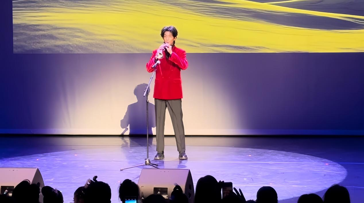 当晚,巴黎13区艺术剧院座无虚席,近千名法国友人及旅法侨胞沉浸在浓郁的中国年味中。作为本届春晚的重点节目,由青年唢呐演奏演员刘增文帅演奏的唢呐独奏《草原欢歌》将现场气氛推向高潮。