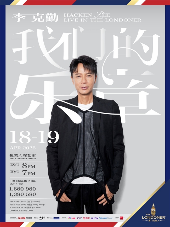 (中国澳门,2026年3月11日) – 歌坛巨星李克勤将于2026年4月18及19日登陆澳门伦敦人®的伦敦人综艺馆,举行万众期待的“我们的乐章”演唱会。门票将于2026年3月12日(星期四)中午12时起在金光票务、大麦网、澳门售票网、猫眼、uutix同步发售。