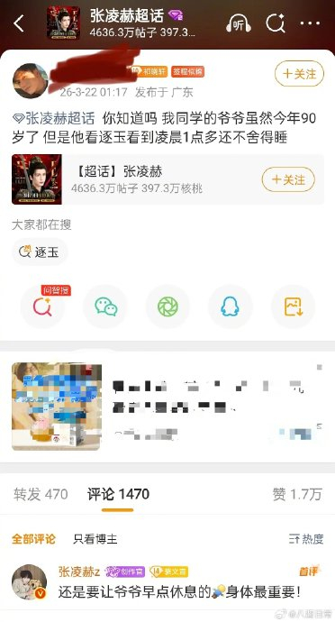 该消息迅速引发热议,并在3月22日获得了剧中男主角的回应。饰演“谢征”的演员张凌赫得知此事后,立即暖心留言劝诫:“还是要让爷爷早点休息的,身体最重要!”。这一温馨互动获得了众多网友点赞,不少人调侃道:“谢大将军发话了,爷爷这回得听话。”