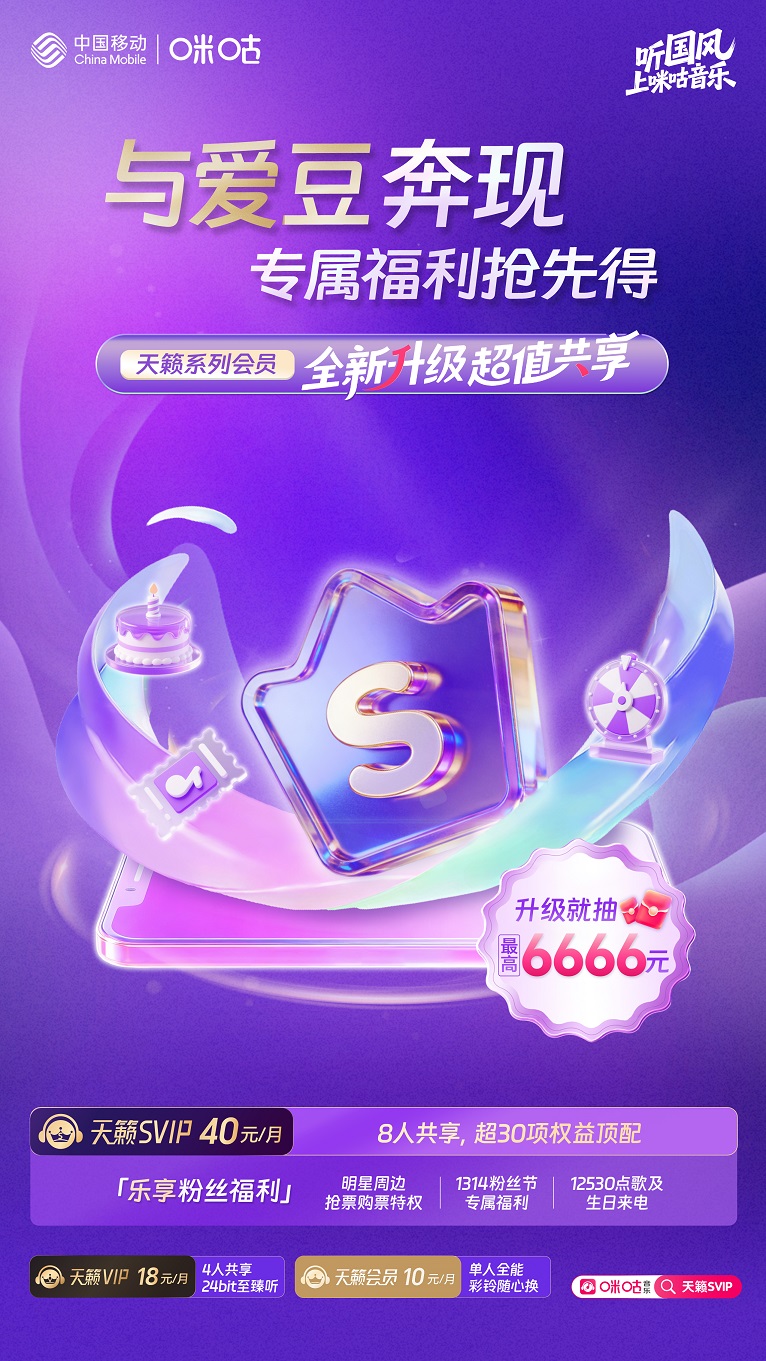 听歌“宝藏APP”又整活了!近日,咪咕音乐天籁会员系列迎来全面升级,天籁 SVIP 全能旗舰产品焕新上线,超30项权益顶配,打造全家共享、追星听歌、AI 权益、宠粉福利全场景覆盖的会员体验。开通任意天籁 SVIP 套餐,即享春日焕新宠粉福利,抽 6666 元红包,福利直接拉满。