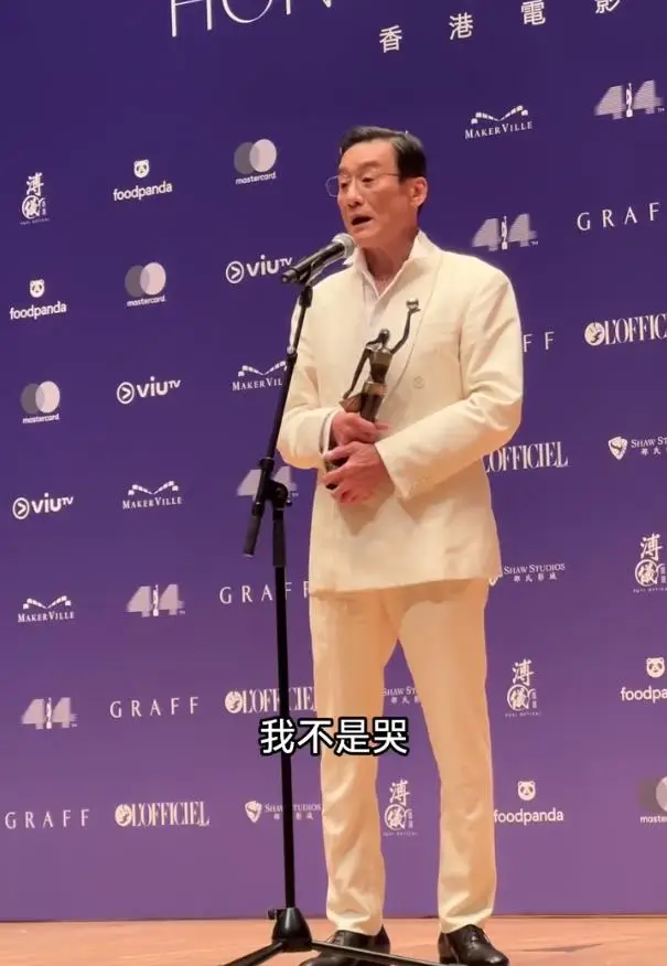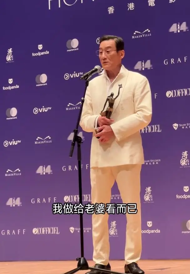 在获奖感言中,梁家辉提及自己入行44年恰逢金像奖44周年,坦言无论是否获奖,这份提名都是终身荣誉。他依次感谢了导演、成家班、戏中搭档及经纪人,话锋一转谈及家人时,眼眶瞬间泛红,声音哽咽:“最该多谢我的家人,还有我太太,她忍受了我44年,多谢你!”话音刚落,他还俏皮叮嘱家人“现在不要打电话给我”,引得全场又笑又感动,随后亲吻奖杯,鞠躬后含泪走下台。