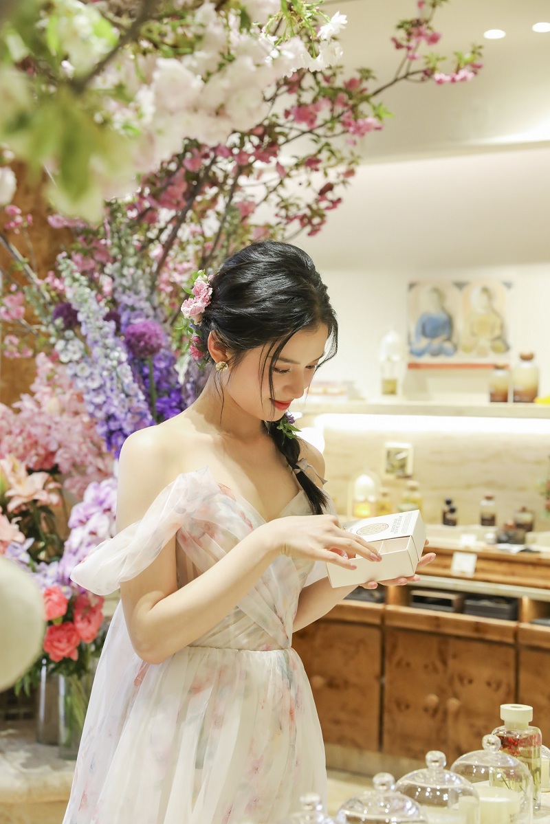 在现场,张婧仪一袭玫瑰纱裙亮相,温婉动人,就像是森林里走出来的花仙子。她在店铺里打卡拍照,闻香选花,也邀请粉丝们共同感受野兽派三里屯太古里新店。